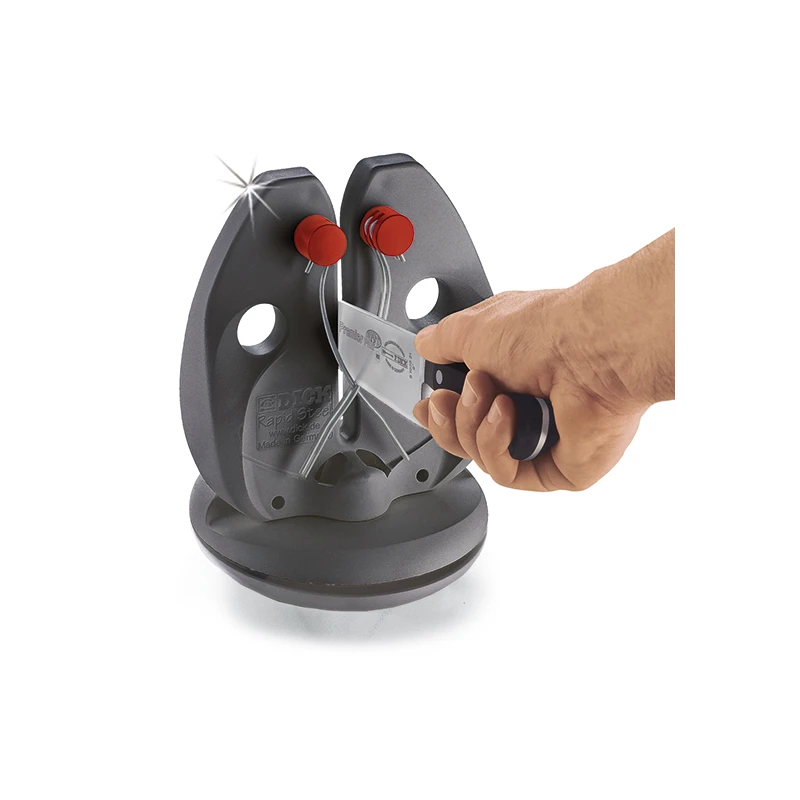 Les tiges affileuses en acier de cette affûteuse sont traitées avec un revêtement spécial haute densité. Ce traitement assure une meilleure efficacité lors de l’affûtage et augmente la longévité des tiges, vous offrant ainsi une solution durable pour maintenir vos ustensiles de coupe en parfait état.