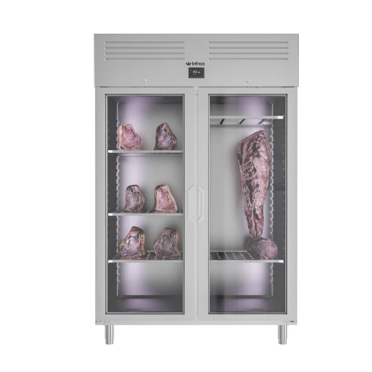 ÉCLAIRAGE: Incorporation d’un éclairage LED, couleur spéciale pour la viande. Cela permet de réduire la consommation d’énergie entre 80 et 90 % par rapport à une ampoule traditionnelle.