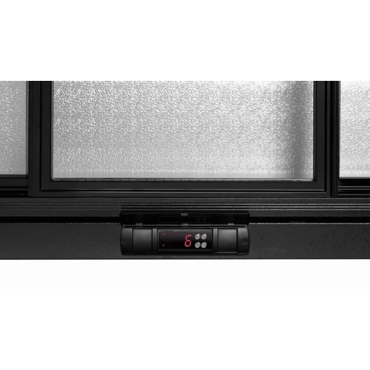 L’arrière bar réfrigéré d’une contenance de 270 litres avec éclairage intérieur et trois portes coulissantes à double vitrage et à fermeture automatique refroidit efficacement vos boissons, avec un froid statique et trois ventilateurs supplémentaires.