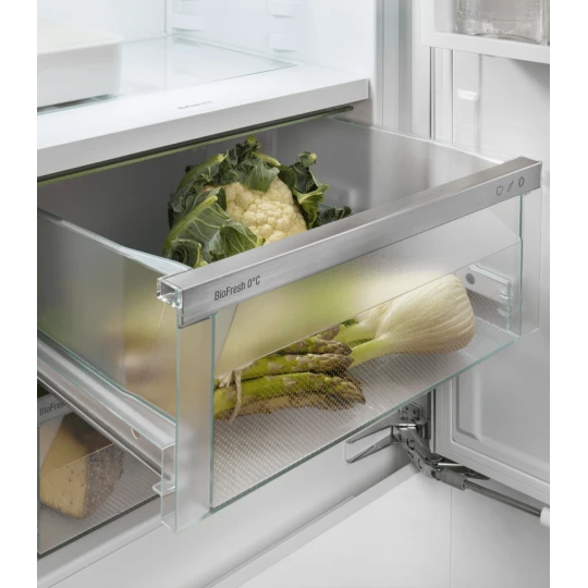 Ce combiné encastrable Liebherr ICBSd 5122-22 intègre des technologies de pointe pour une conservation optimale de vos aliments tout en étant respectueux de l’environnement. Doté des tiroirs BioFresh, il assure une conservation jusqu’à trois fois plus longue des fruits et légumes. Son compartiment congélateur SmartFrost facilite le dégivrage et permet l’organisation flexible de votre espace de stockage. En plus, sa compatibilité avec les applications smarthome élève l’expérience utilisateur à un niveau supérieur.