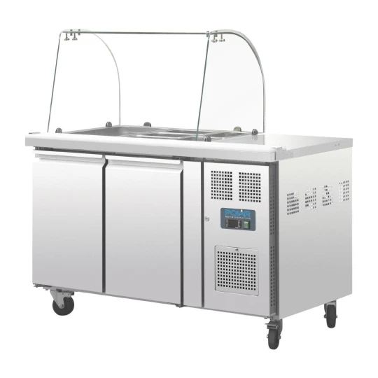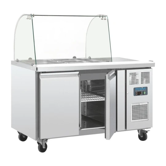 Ce comptoir de préparation réfrigéré de la marque reconnue Polar est un équipement essentiel pour les professionnels de la restauration nécessitant un espace de travail réfrigéré avec une protection sanitaire grâce au pare-haleine. Voici des détails supplémentaires sur ce produit: