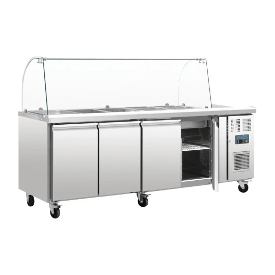 Comptoir de préparation réfrigéré GN avec pare-haleine Série U 4 portes – Polar – CT395