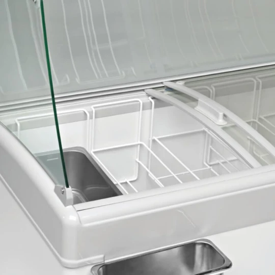 Le Congélateur Coffre à Crème Glacée Iceshop (GTO300GI) est le choix idéal pour les professionnels de l’Horeca qui cherchent un moyen fiable et efficace de stocker leur crème glacée. Avec une capacité de 300 litres, vous pouvez stocker une grande quantité de produits congelés, ce qui vous permet de gérer facilement vos besoins en matière de stockage. La température de fonctionnement est de -26ºC / -12ºC.