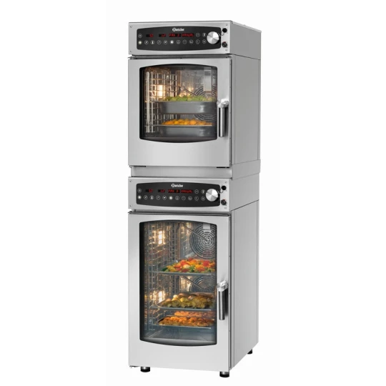 - Capacité : Permet différentes configurations possibles : association d’un four 6 x 1/1 GN avec un autre 6 x 1/1 GN ou avec un 10 x 1/1 GN.