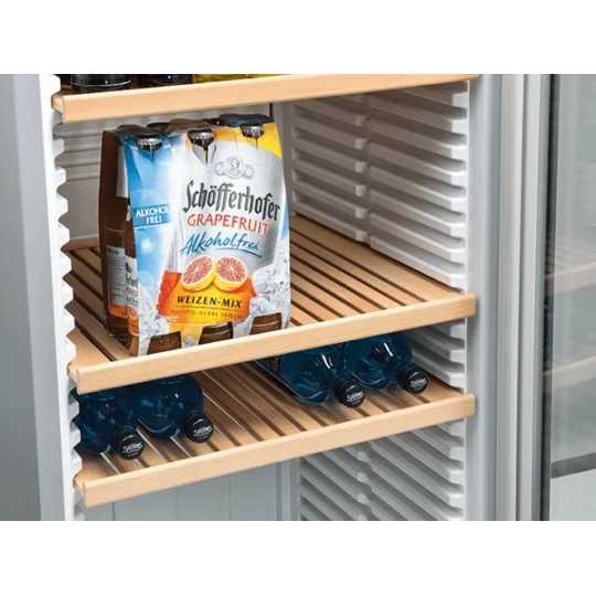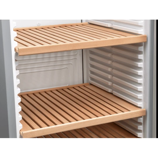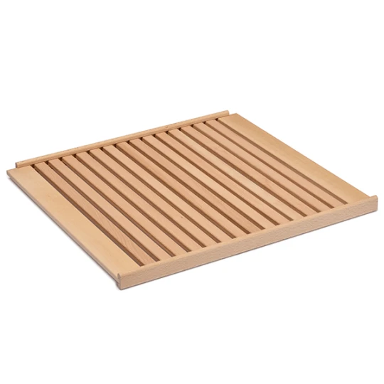 La clayette en bois, faite à la main, offre une stabilité supplémentaire pour les produits présentés.