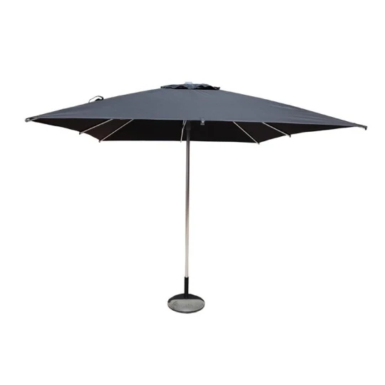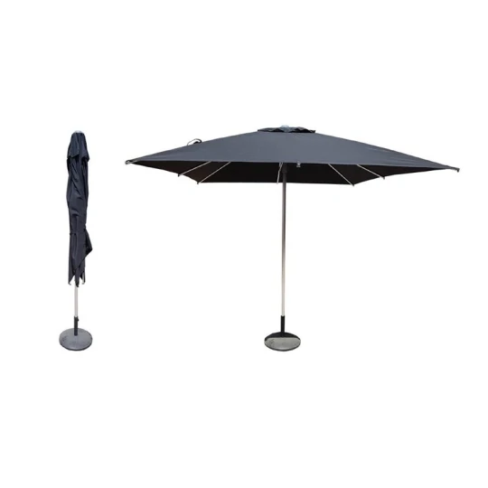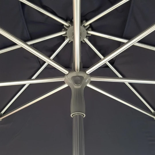 - Résistance et Durabilité : Le choix du polyester comme matériau principal garantit une résilience face aux intempéries et une conservation de l’aspect esthétique du parasol.