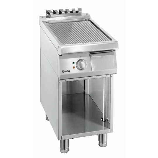 Comparée aux autres planchas du marché, la 700 L400 de Bartscher se distingue par sa construction solide, sa facilité d’entretien et surtout par sa surface de cuisson nervurée, rare sur les modèles concurrents, qui permet de donner du caractère et de la texture à vos préparations culinaires.