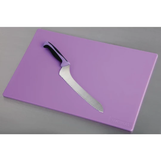 Dimensions: 304 x 450 x 12mmHauteur: 300mmLargeur: 450mmProfondeur: 12mmMatériau: PEBDPoids: 1.33 kgPrésentation d’une nouvelle couleur pour se conformer à la réglementation de l’étiquetage des allergènes de l’UECode couleur pour éviter la contamination croiséeViolette (allergènes) – épaisseur 12mm