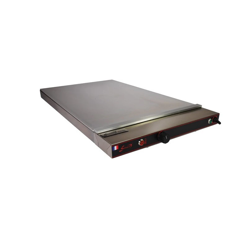 De plus, cet accessoire électrique professionnel à plaque chauffante dispose d’une résistance performante qui est répartie sur toute la surface de la plaque en aluminium brossé pour assurer une répartition homogène de la température. Cette plaque chauffante Sofraca vous garantit donc une diffusion parfaite de la chaleur sur tous vos produits sans avoir de la sur cuisson. Cette plaque chauffante électrique à usage professionnel est idéale pour le maintien au chaud des vos produits tels que les pizzas, quiches, croissants,…