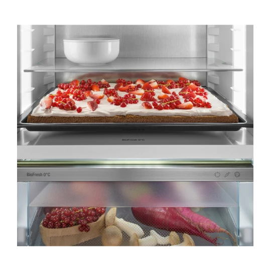 Ce réfrigérateur encastrable représente le summum du luxe et de l’innovation. Avec son panneau arrière SmartSteel pour une hygiène optimale et ses panneaux latéraux à LED fournissant un éclairage complet, il met en lumière chaque aliment. La technologie SoftSystem assure une fermeture douce et silencieuse de la porte, tandis que l’écran couleur Touch & Swipe facilite l’accès à toutes ses fonctions avancées. Les deux tiroirs BioFresh sur rails SoftTelescopic vous permettent de conserver vos fruits et légumes frais jusqu’à trois fois plus longtemps, préservant ainsi leurs vitamines et saveurs.