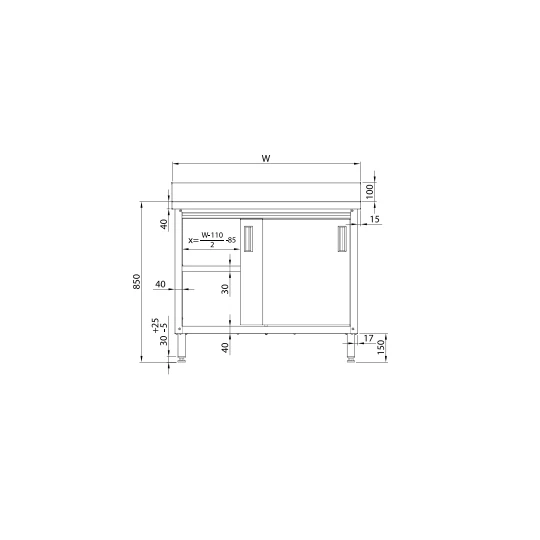 – L’espace entre le sol et le bord inférieur du profilé, de l’étagère ou du fond du meuble est de 150 mm