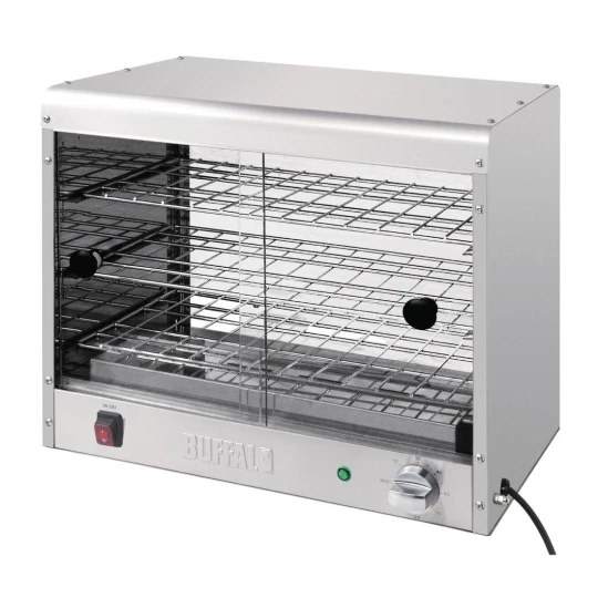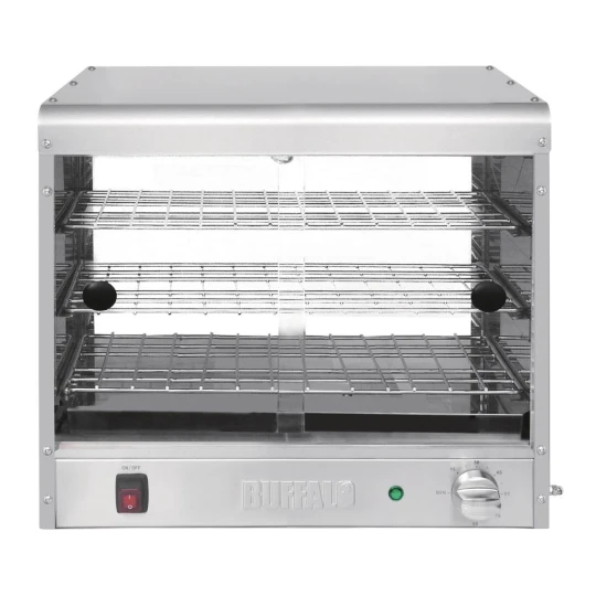 Cette vitrine chauffante à 3 étagères amovibles vous permet de disposer vos préparations comme vous le voulez, tartes en haut, quiches en bas et pizzas au milieu une multitude de possibilité s’offre à vous. Dû à ses portes arrières coulissantes en verre vous avez accès facilement à l’intérieur de la vitrine ce qui vous permet un service sans embuches.