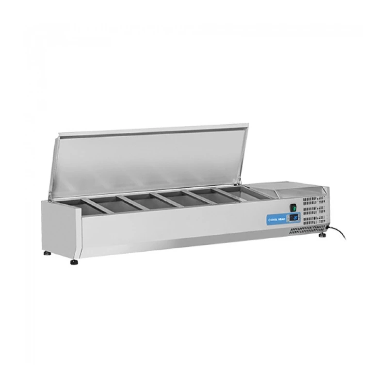 GN profondeur jusqu’a 15cm, inox 18/10 avec verre sécurité, température réglable +2°C/+10°C et interrupteur marche-arrêt illumine, livraison sans bacs GN, avec couvercle inox